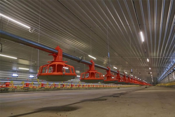 غرفة التحكم لبيت الدجاج مجموعة من المراوح نافذات تهوية صغيرة، ستائر رطبة، ومدخل الهواء نظام الترطيب والرش 3. نظام تغذية الدواجن 4. نظام إدارة الإنتاج الحديث